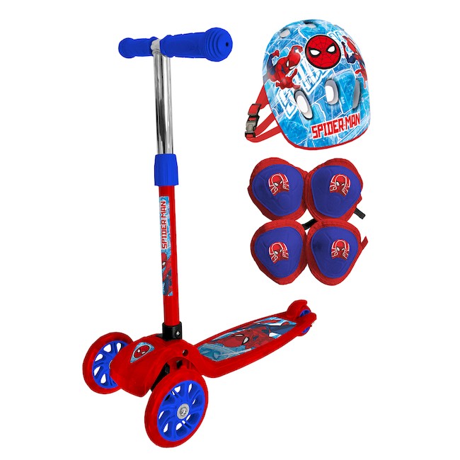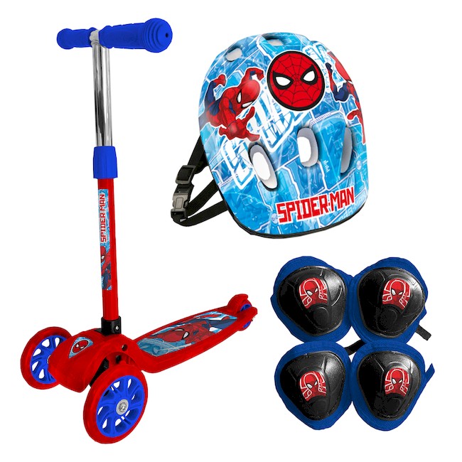 MONOPATIN SPIDERMAN PLEGABLE ROJO CON KIT DE PROTECCION